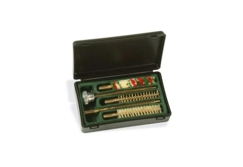 Set za čišćenje oružja: 1x vunena, 1x spiral mesing, 1x dlaka, 1x trodijelna šipkaPVC kutija..